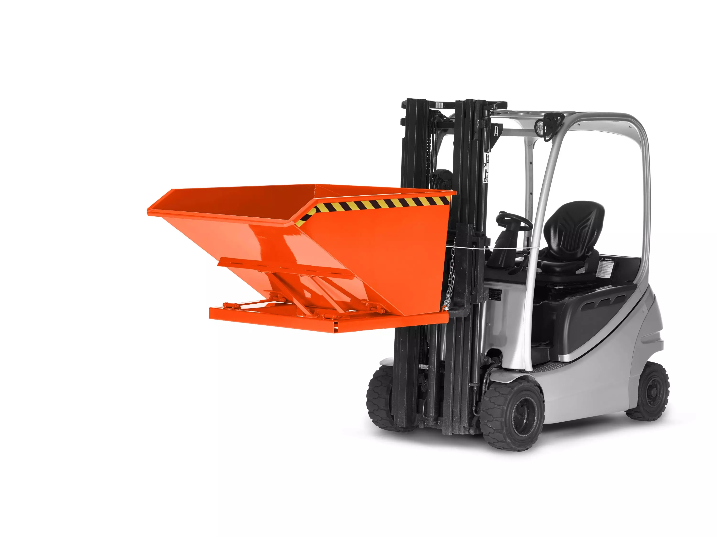Produktinformationen "Muldenkippbehälter Muldenkipper für Stapler Volumen 1,00m³ Tragfähigkeit 1200 KG RAL 2004 reinorange - Made in Germany"