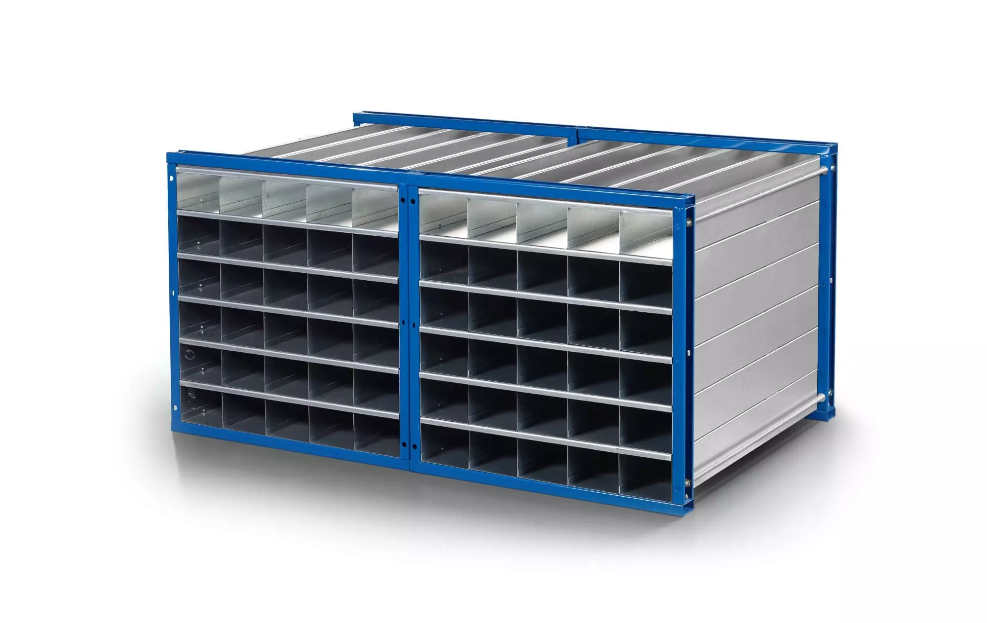Das Wabenregal überzeugt nicht nur durch seine Funktionalität, sondern auch durch seine Wirtschaftlichkeit. Die Fächer sind individuell lieferbar und das System ist 2-fach stapelbar, was eine noch effizientere Nutzung des Lagerplatzes ermöglicht. Zudem zeichnet sich unser Regalsystem durch seine hohe Qualität aus, mit langlebigen Blechwannen aus verzinktem Stahl, inklusive Beschriftungsleisten und einer Pulverbeschichtung in Wunschfarben für eine ansprechende Optik und zusätzlichen Schutz.