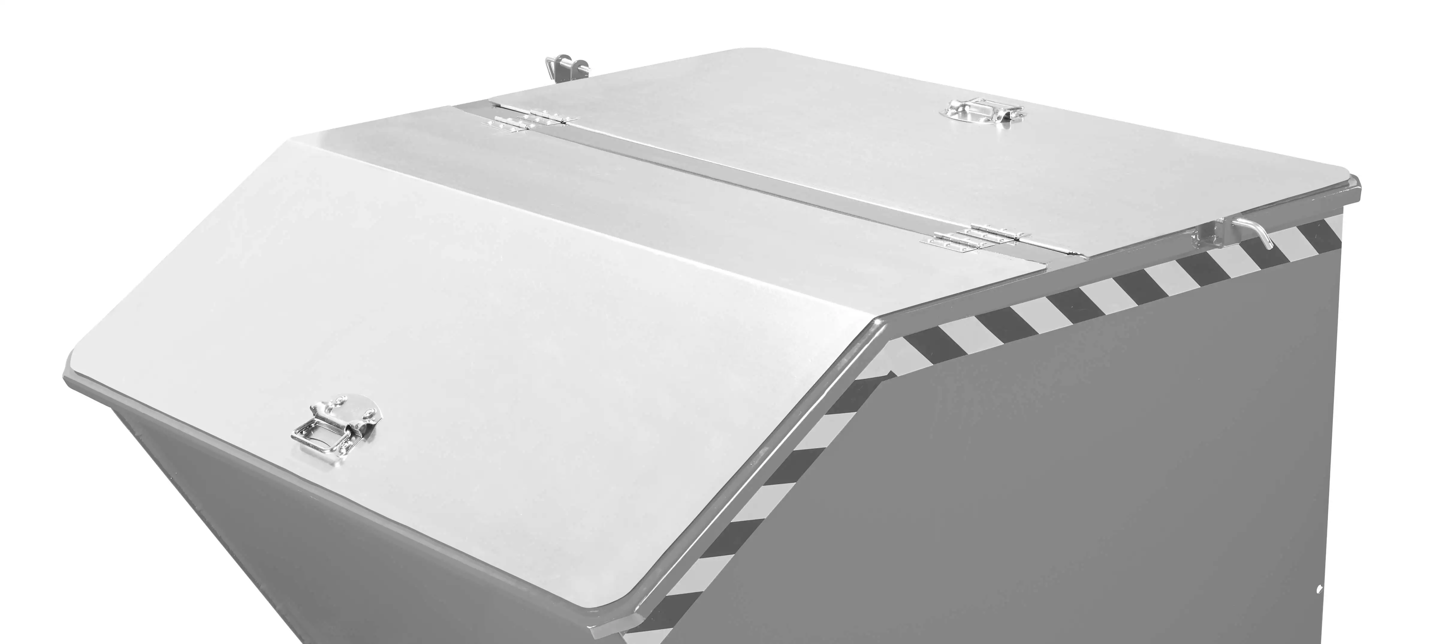 Produktinformationen "Zubehör: Klappdeckel 2-teilig verzinkter Klappdeckel, ohne Kantenschutz, für Kippbehälter bis 750 Liter Volumen - Made in Germany"