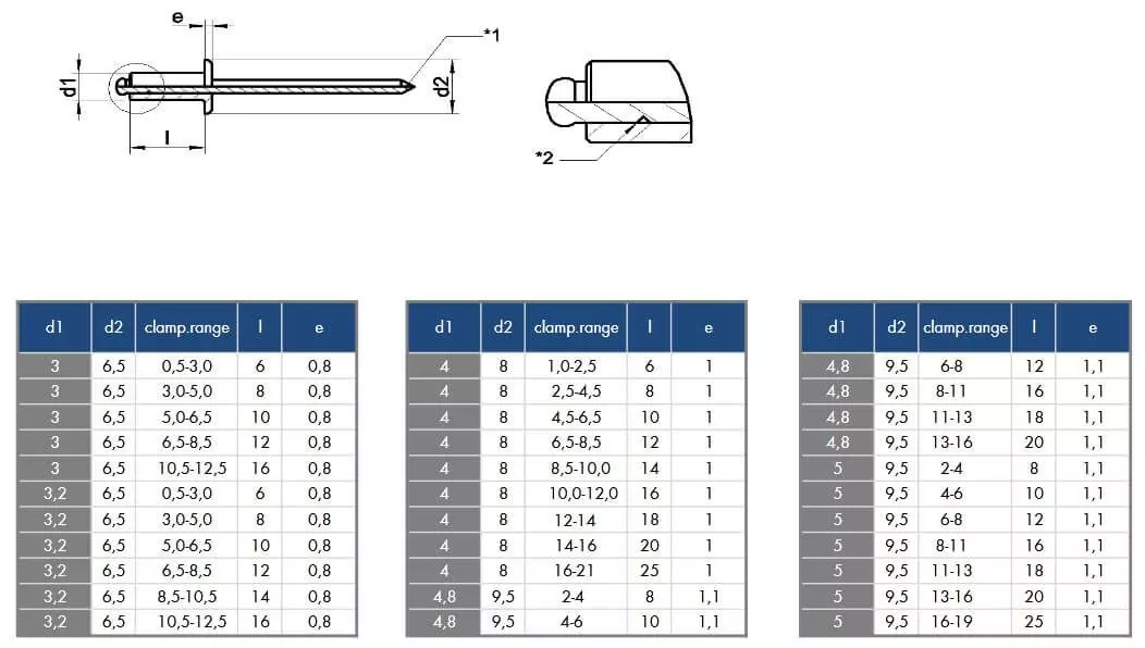 Product information "Blind rivets Ø4mm x 14mm (100 pieces) (clamping range 8.5 - 10.0mm) DIN 7337 A Similar UNI 9200 A EN ISO 1598 Stainless steel V2A AISI 304 pop rivets Rivets Blind rivets Stainless steel rivets"