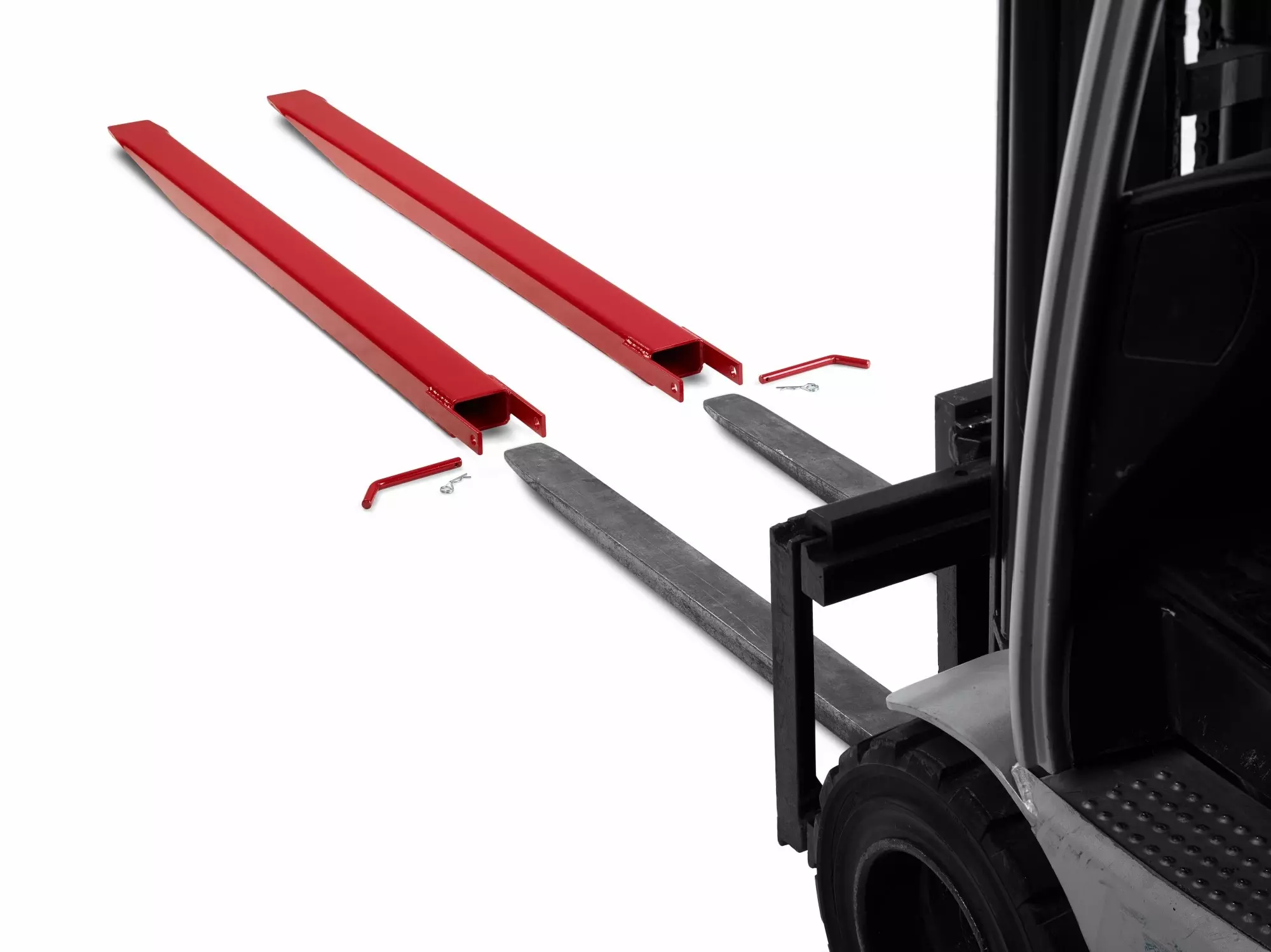 Product information "Closed fork extension 1800mm for tine size 125x50 mm box section made of 6 mm sheet steel RAL 3000 fire red - Made in Germany"