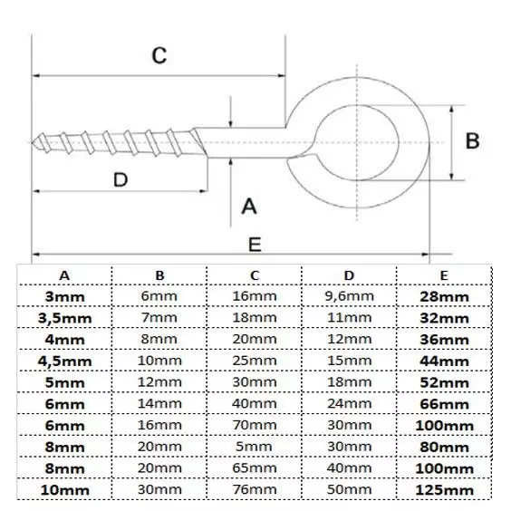 Product information "Eyebolt 6mm x 100mm (10 pieces) with wooden thread stainless steel V2A AISI304 Screw hook Eyebolt Eyebolts Eyebolt Screw eyelet Screw with ring Eye hook"