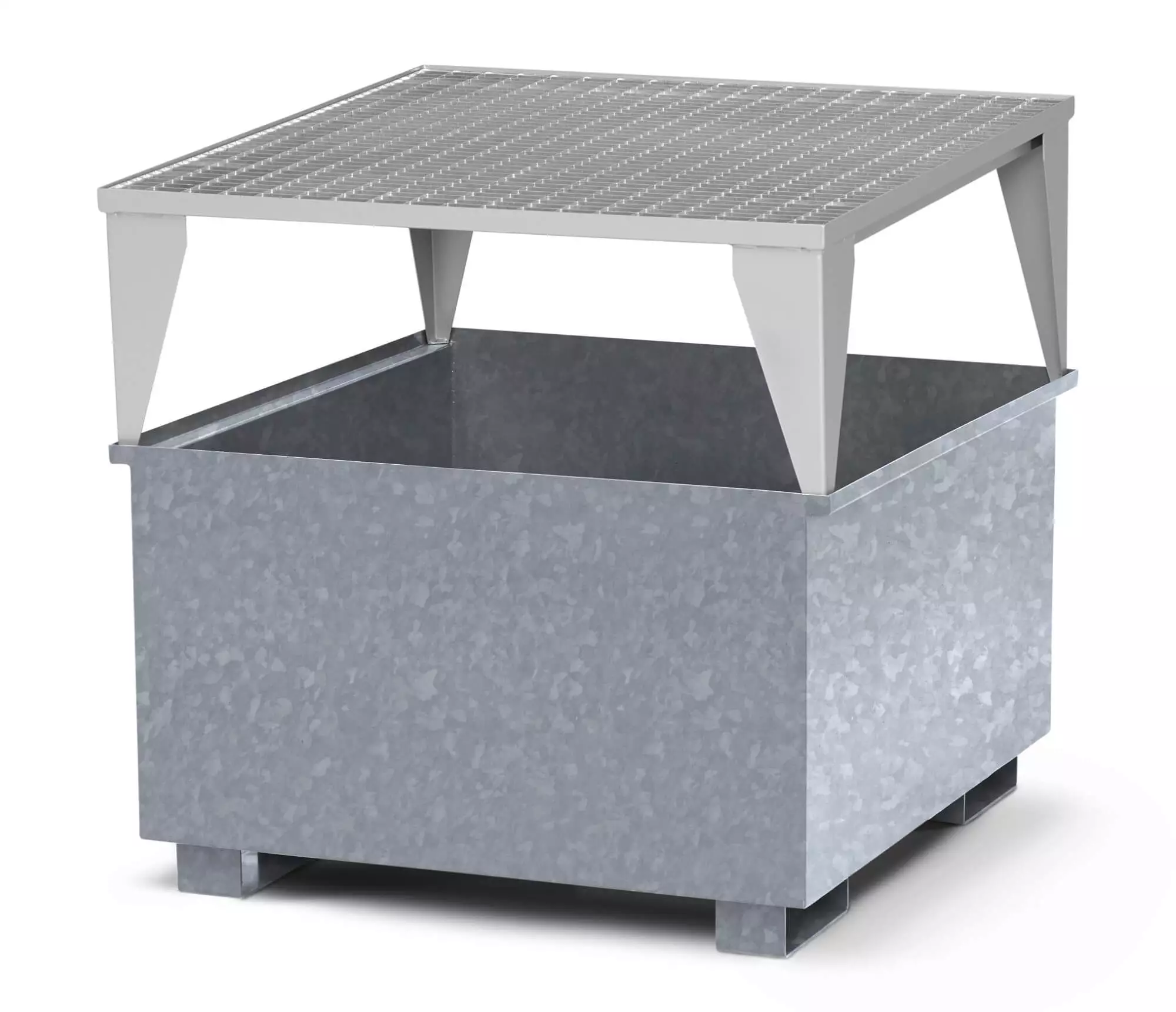 Product information "Galvanised steel drip tray type HTC-11 for 1x 1000 litre IBC including 1x filling rack type RAB, WxDxH 1,300 x 1,280 x 1,280 mm, declaration of conformity according to StaWa-R, galvanised - Made in Germany"