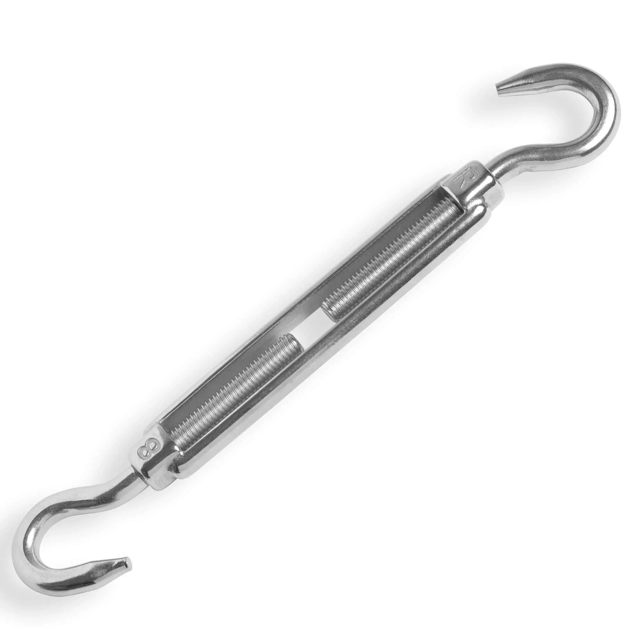 Informations sur le produit "Tendeur 10mm (2 pièces) avec forme ouverte B Crochet/accrochage Acier inoxydable V4A AISI 316 Tendeur Tendeur de traction Élément de serrage Turnbuckle"