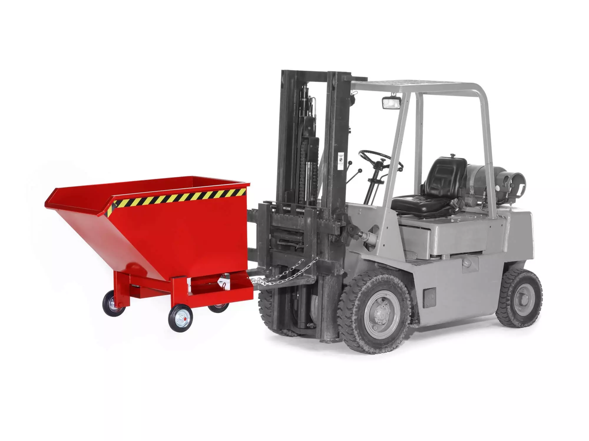 Info sui prodotti "Furgone portacasse mobile con tasche carrabili e rotelle Volume 0,8 cbm Portata 600 kg LxPxH 1040x1660x1250 mm in RAL 3000 rosso fuoco - Made in Germany"