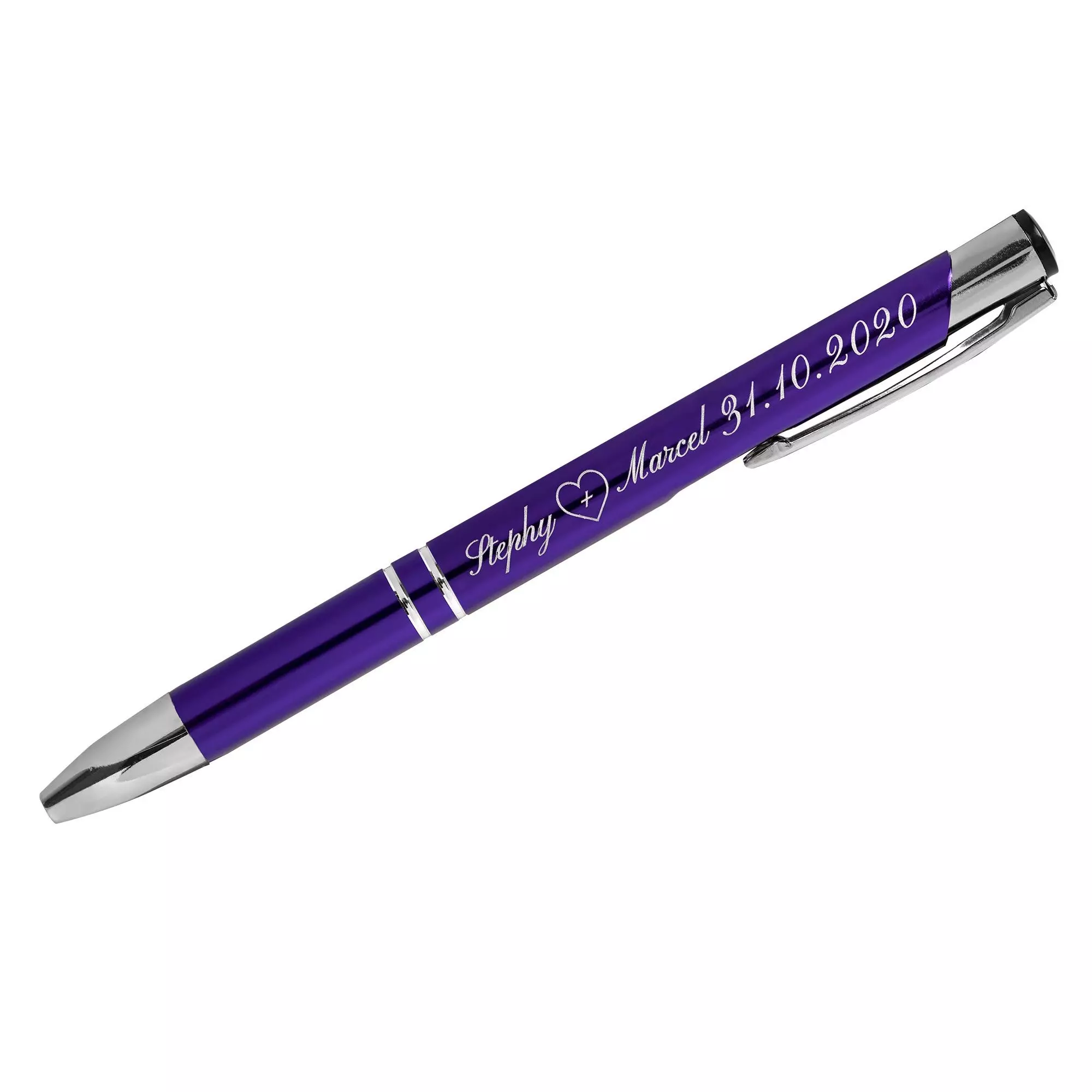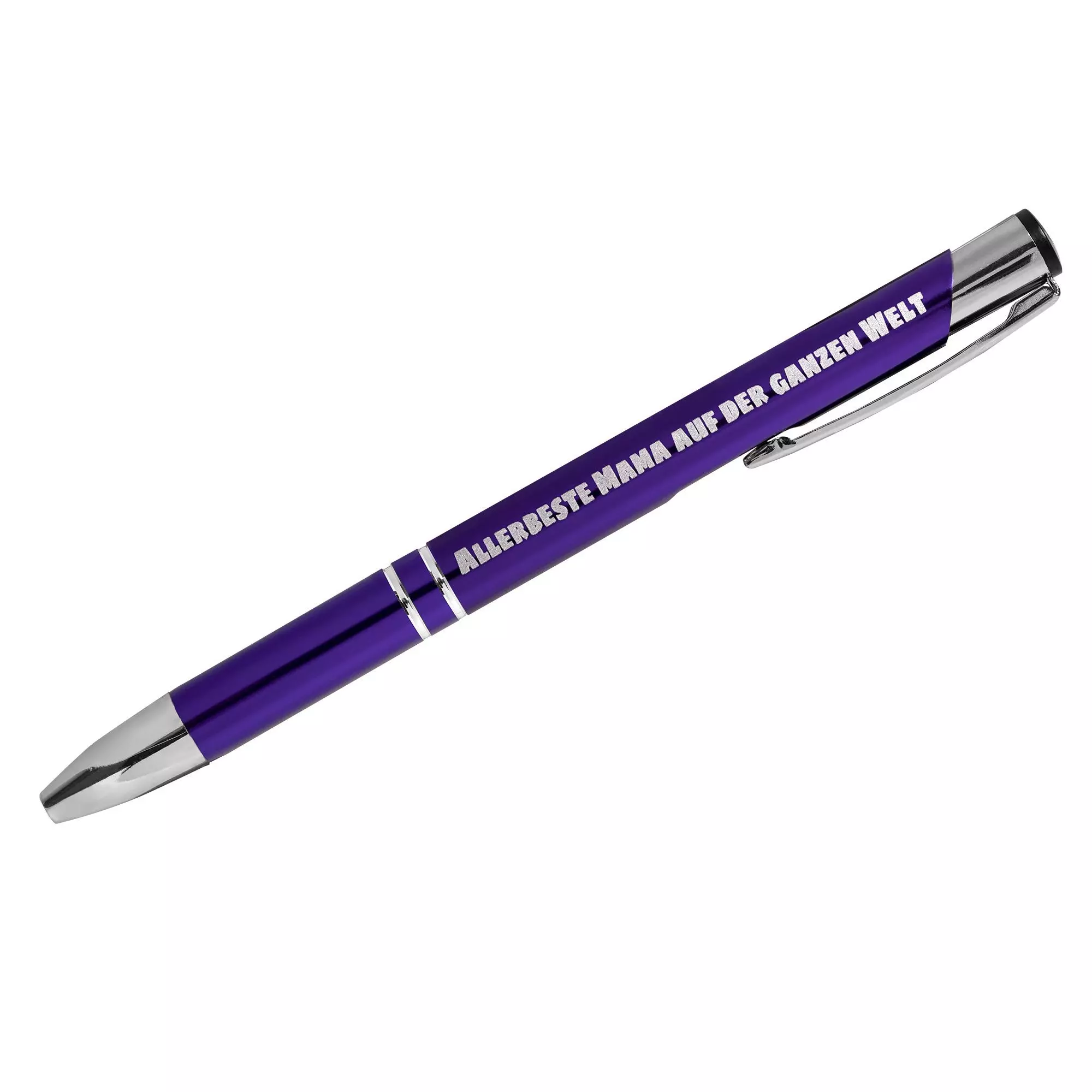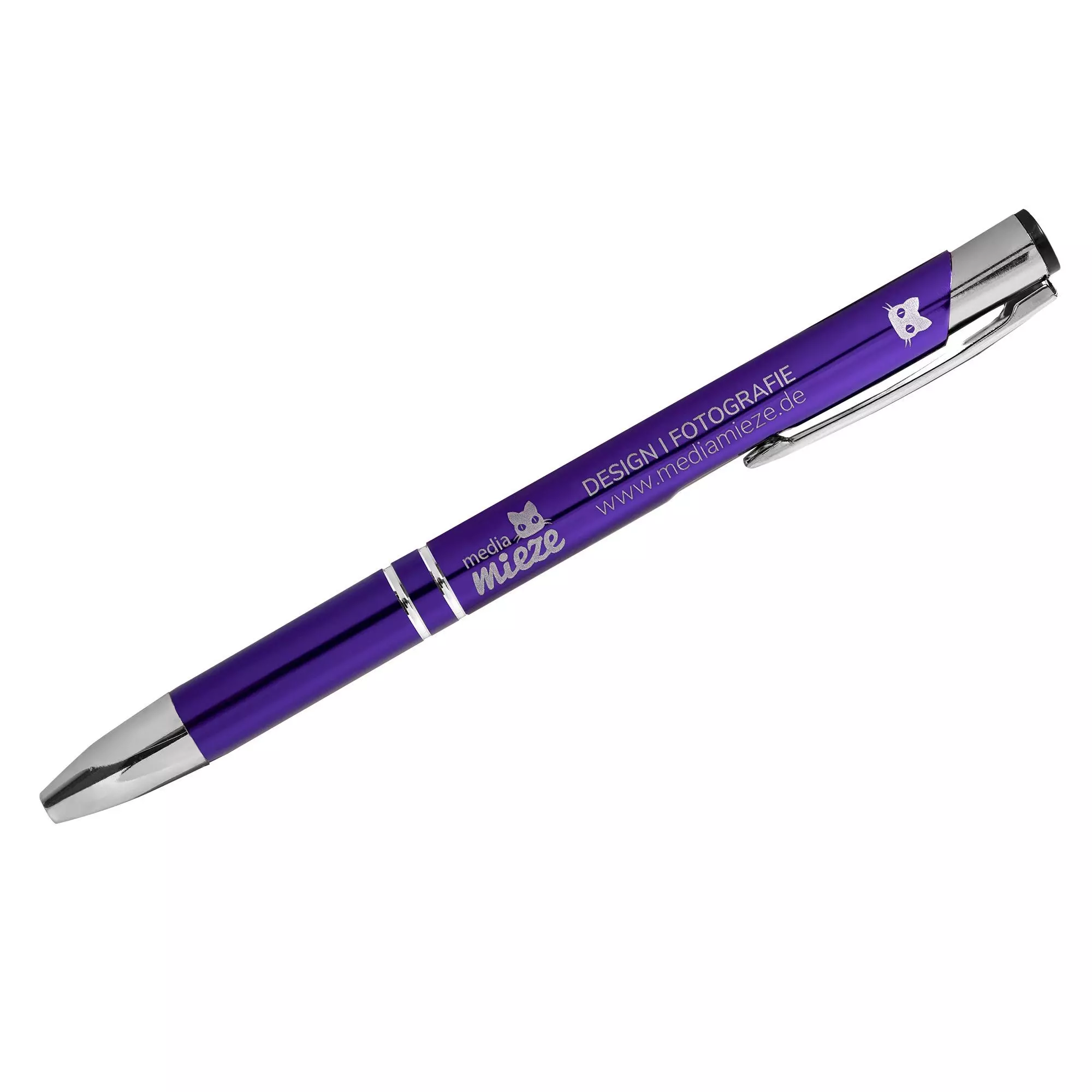 Produktinformation "Biros med gravyr SIGNATURE ELEGANCE Lasergravyr blå-magenta 266C Anodiserad aluminium (10 st) Linjebredd: M ca 0,6mm Bläck: blått"