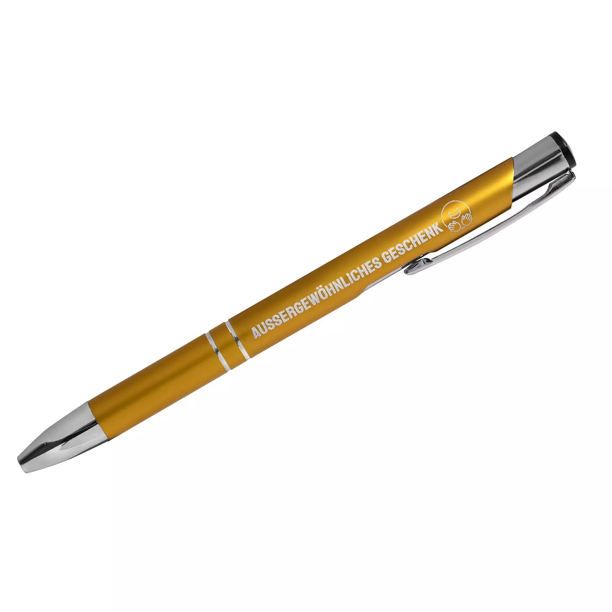 Produktinformation "Biros med gravyr SIGNATURE ELEGANCE Lasergravyr gul Anodiserad aluminium (200 pennor) Linjebredd: M ca 0,6 mm Tusch: blå Med logotyp på begäran"
