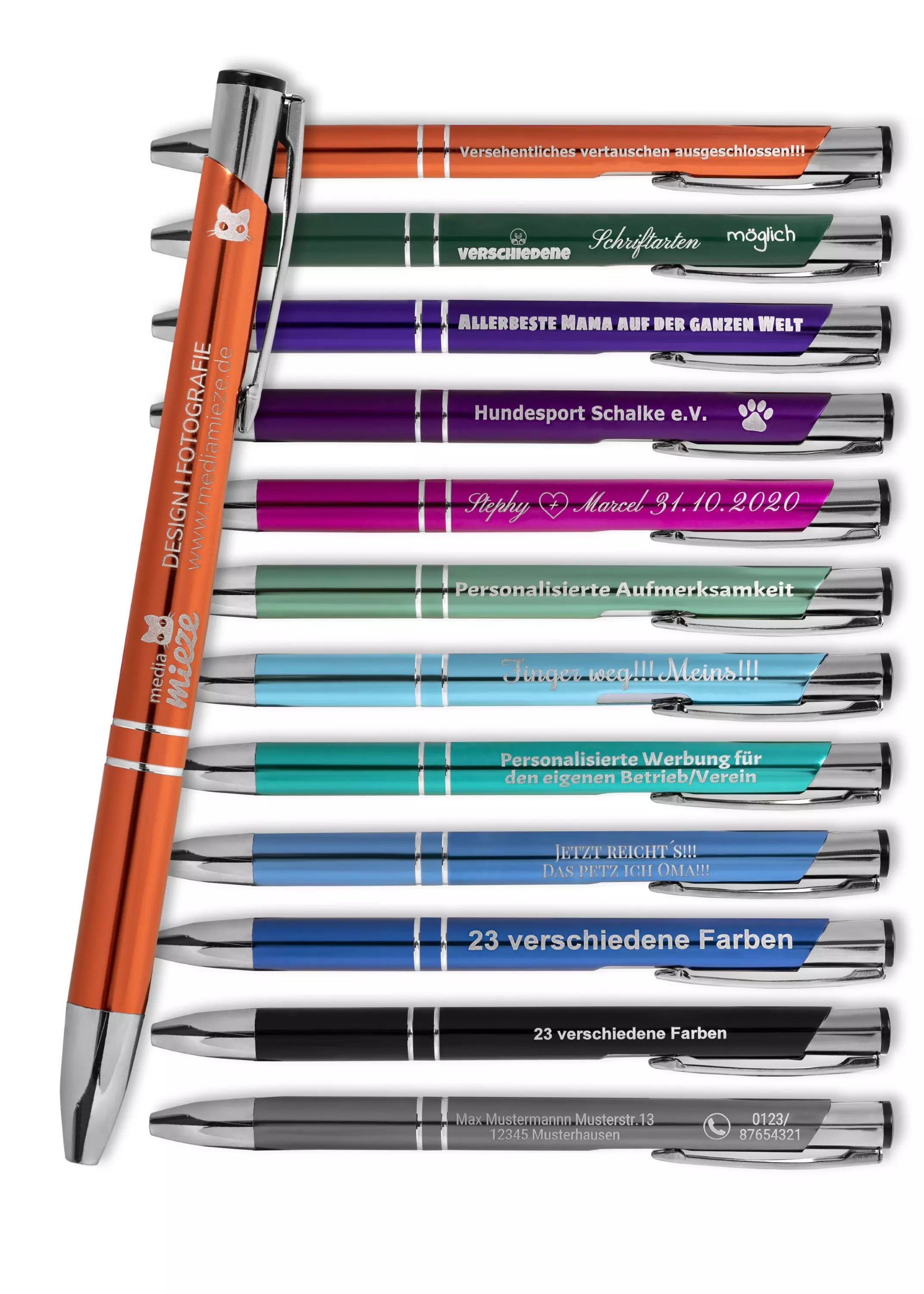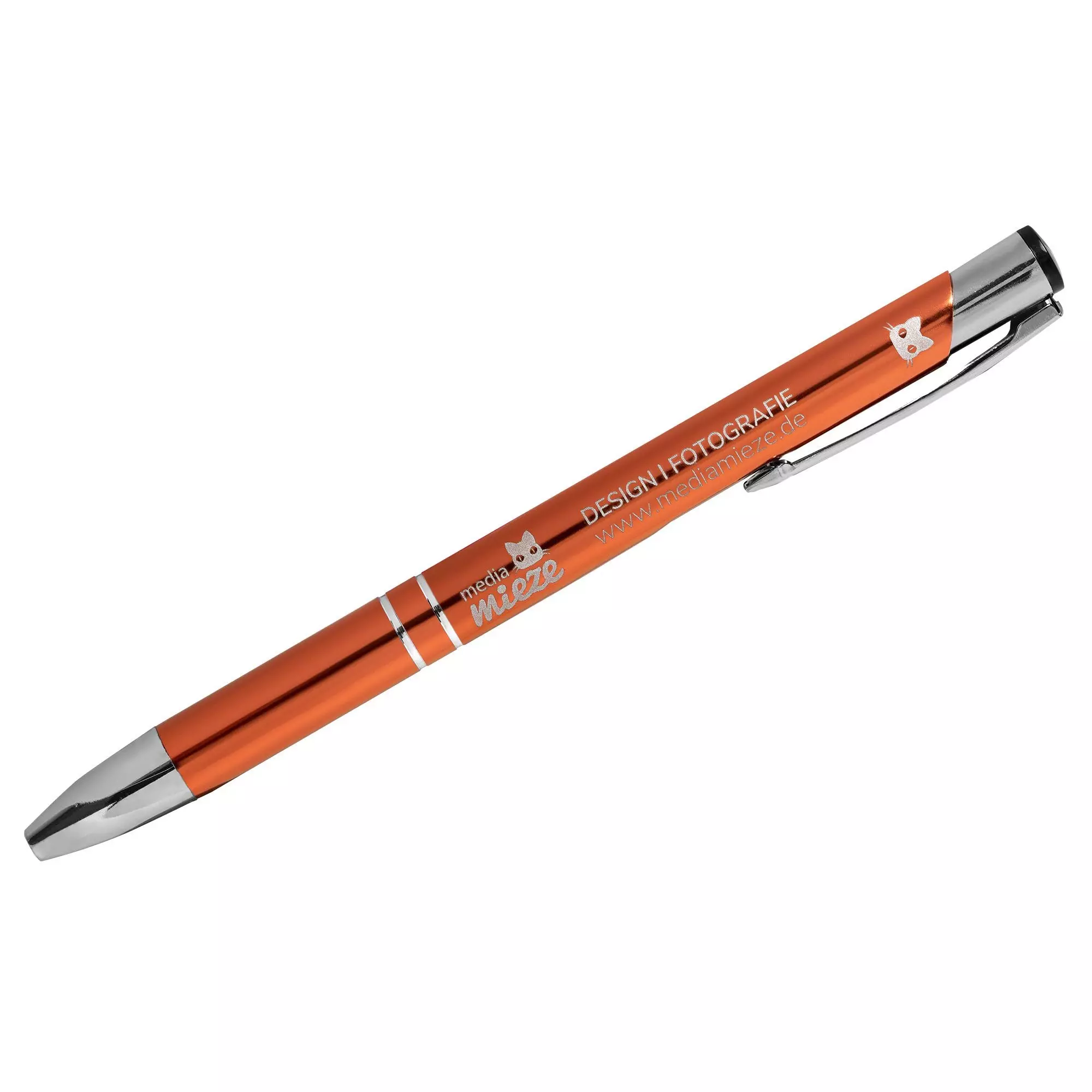 Produktinformation "Biros med gravyr SIGNATURE ELEGANCE Lasergravyr rosa-röd 805C Anodiserad aluminium (10 st) Linjebredd: M ca 0,6mm Bläck: blått"